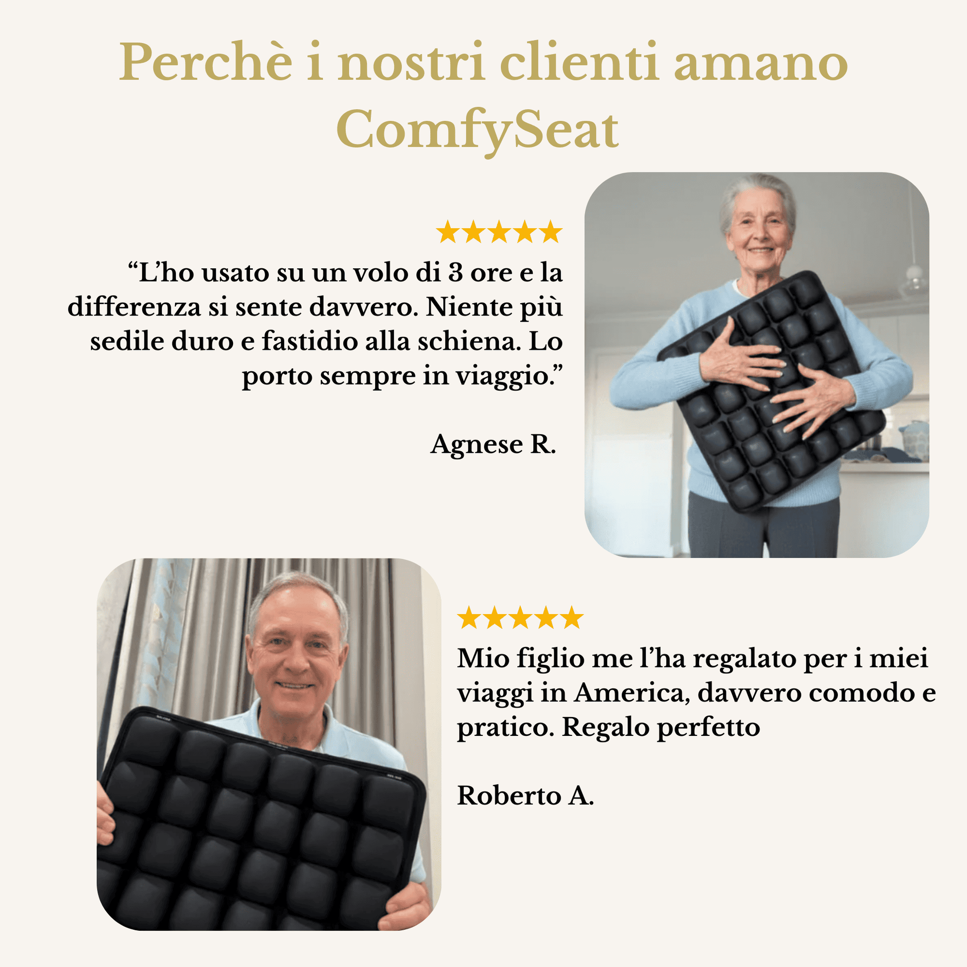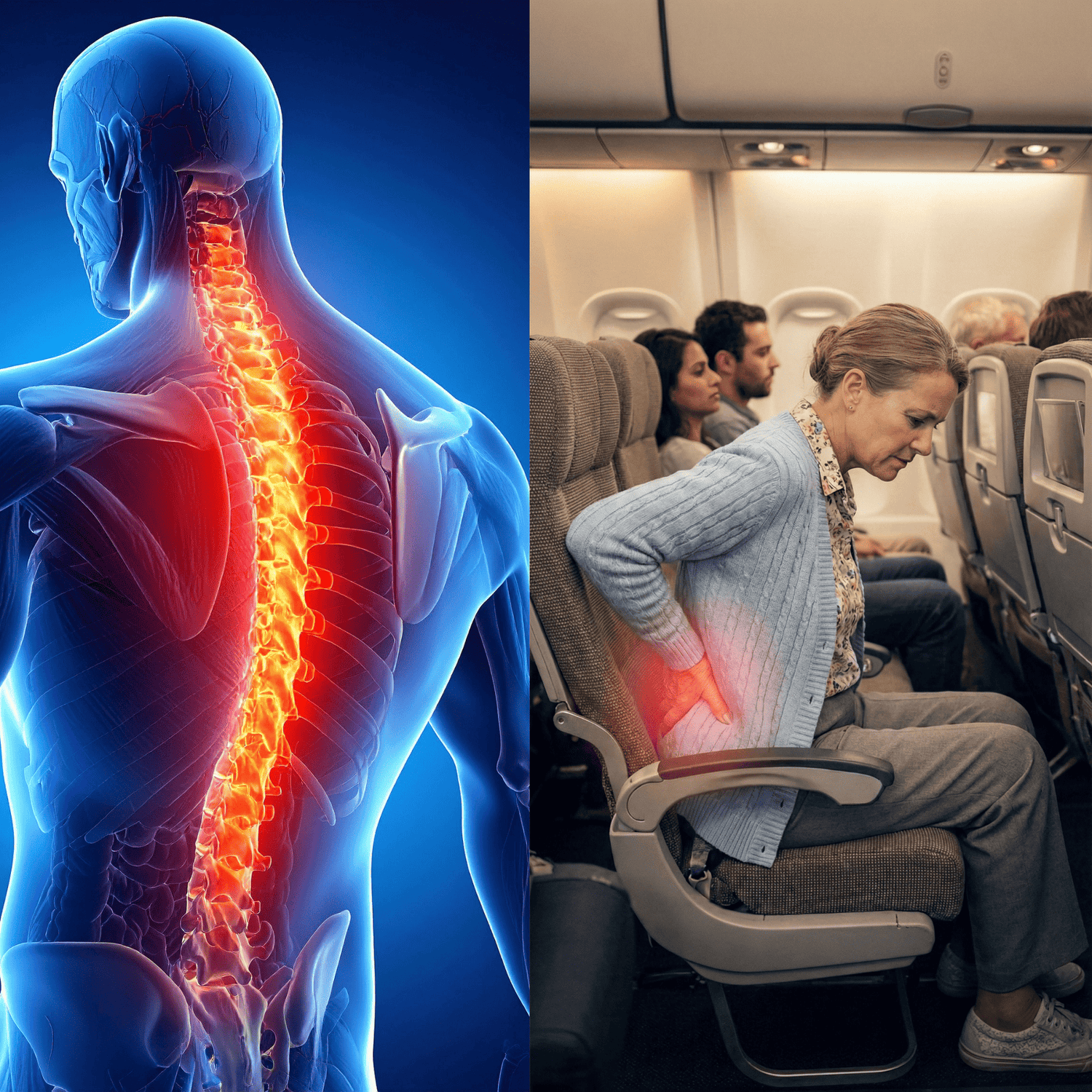 • Sollievo dimostrato: Viaggiatori over 40 riportano fino al 90% di riduzione del dolore cronico al coccige, dell’indolenzimento ai fianchi e della pressione lombare — anche su voli di 8–14 ore.